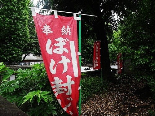 帰りに門の近くで「奉納 ぼけ封じ」という幟旗が目に入った。