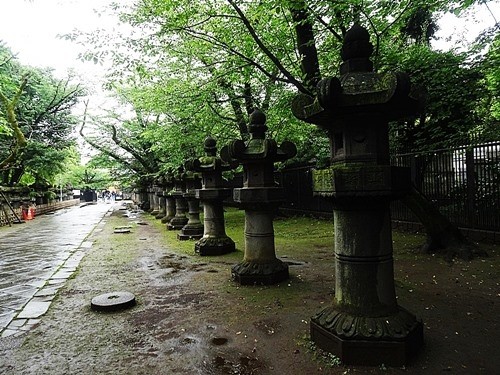 東照宮の入口「水舎門」を入ると、両側に石燈籠が並んでいる。