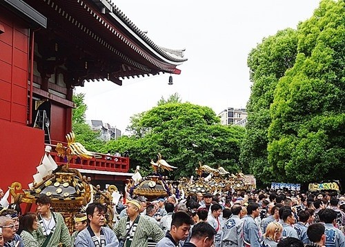 三社祭の神輿を見る