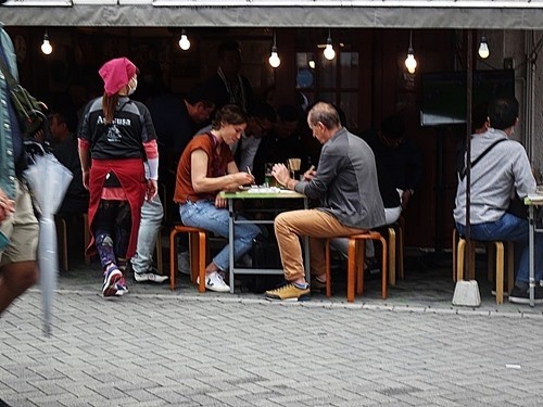 地元民に交じって屋台で飲食する外国人