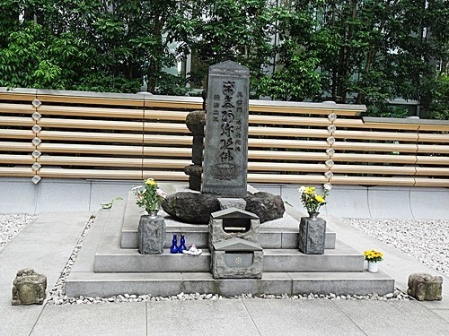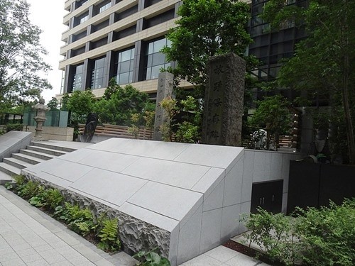 この石碑は東京駅日本橋口近くのビルの陰にあり、かなり分かり難い。