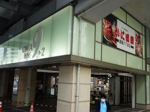 高速道の下は「GINZA9」という建物になっていて、私が年に1回くらい行く「かに道楽」が入っている。ここは元は川だったので住所は無く、仕方なく「銀座8-10先」と、「先」という文字が入っている。