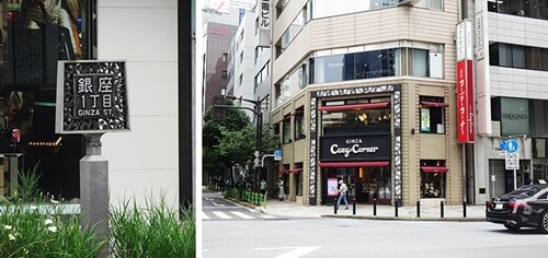 銀座通りに面した有名店には「コージーコーナー」、化粧品の「ポーラ」、ダイヤモンドの「ハリー・ウィンストン」、金の「TANAKA」、雑貨と飲食店がはいる「ギンザ・キラリト」がある。