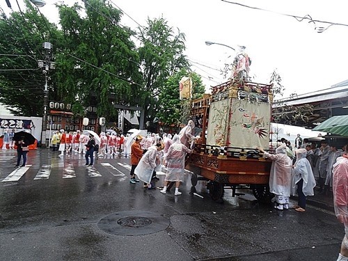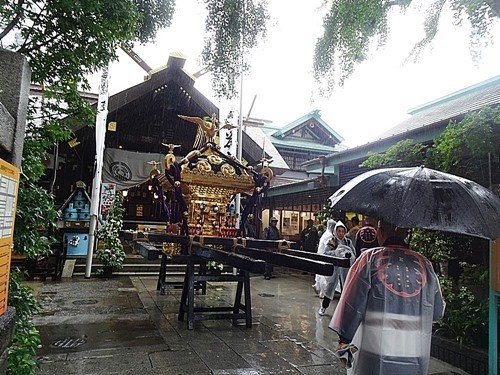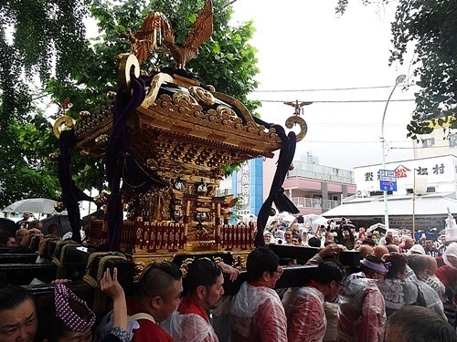 神輿の担ぎ手なのか、雨合羽など着ていないグループもいる。