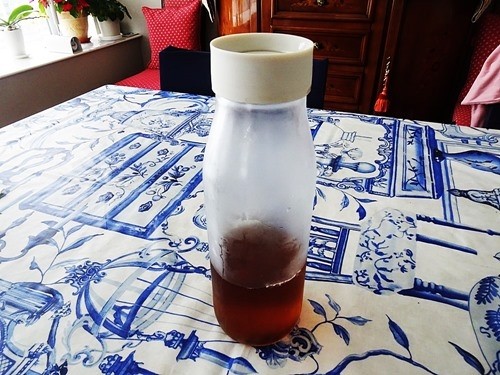 私は出掛ける時に、このボトルに女房が作っておいてくれる「麦茶」を、小さな携帯用ボトルに詰め替えて持って出る。「どこからでも注げる」という仕掛けが知りたくて、キャップを外して裏側を見た。そして「なるほどー」と感心した。これが300円とは凄い、お勧めの逸品である。