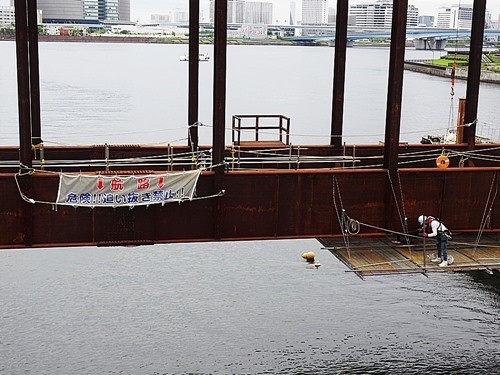 その隣に赤錆びた鉄橋がある。これが現在、工事中である。