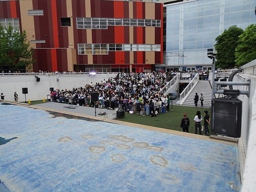 私が通り掛かった時にも、私が全く聞いたことも無い男性グループの登場を待って、若い女性が石段に溢れていた。どうやらDVDを買った人だけが、石段に入れるようだった。