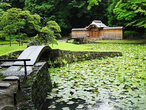 池の反対側に廻ると、今まで私がいた場所に和風の小屋が建っているのが見える。