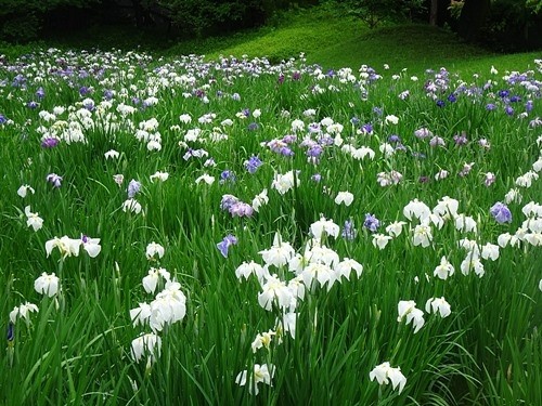 突き当りを左に行くと、そこには花菖蒲の群生が見えた。