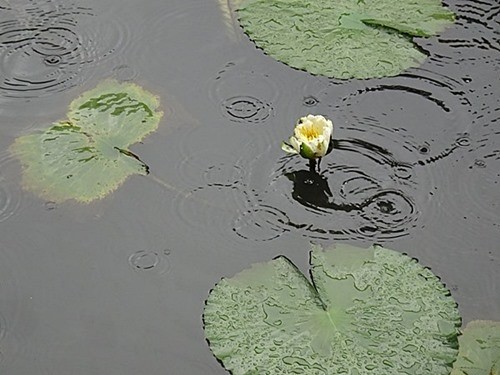 睡蓮と睡蓮の間の水面に、雨が落ちて波紋となる。これも飽きずに眺めていた。