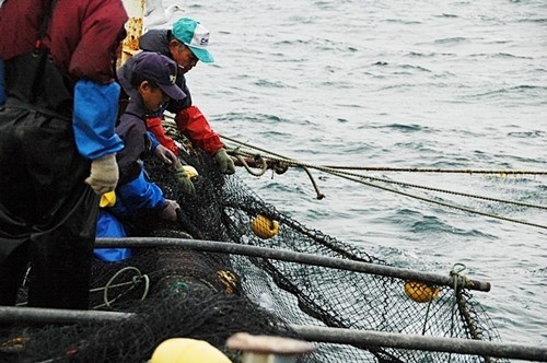 今回の(おまけの話)の写真は2007年の噴火湾での定置網漁の様子である。