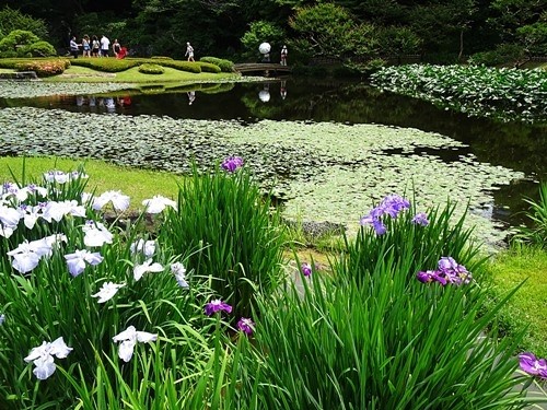 二の丸庭園の池の岸辺に咲く「花菖蒲」