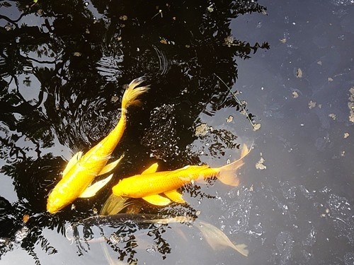 しばらく見ていたら、それは1匹の黄色い「ヒレナガニシキゴイ」だった。