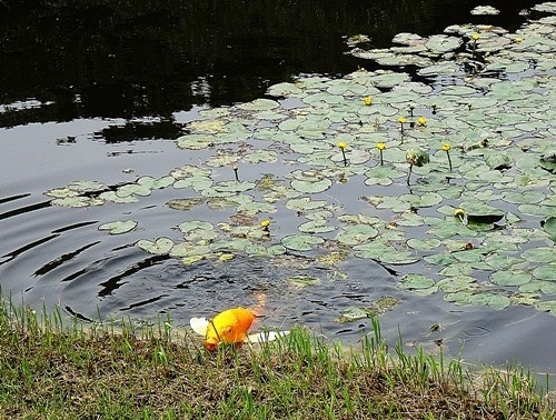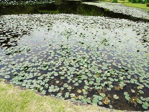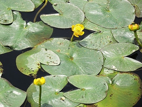 近付いて行ったら、池の中に立て札が立っていて「ヒメコウホネ」と書いてあった。