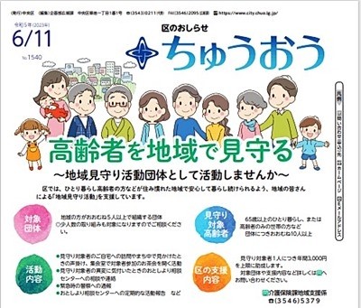 中央区の高齢者に対するサービスは色々とあるが、その中から無料で支給されたものを紹介する。