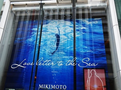 ラルフローレンの裏は冬はアイススケート場、今はカフェであるが、これもアートである。写真はミキモトの店の正面の画像であるが、アートっぽい。