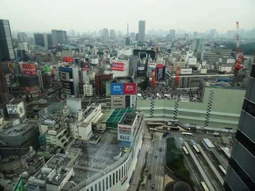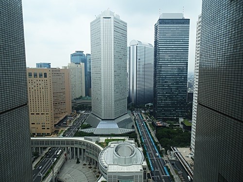 このビルは屋上には出られないので、ニコンのある28階のエレベーターホールから新宿駅西口方面を見ることになる。ここからは小田急ハルクの屋上が見える。天気の良い日は、遠くに東京スカイツリーも見える。
