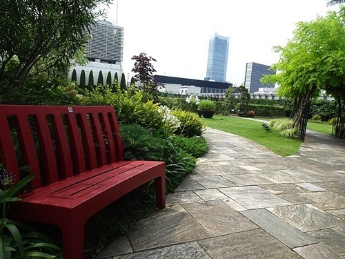 屋上庭園は「Q-COURT」と名付けられていて、「知る人ぞ知る」みたいな感じで、私が行ったひと昔前にはほとんど来ている人はいなかった。屋上庭園に行くにはエレベーターで8階まで行き、そこから階段を1階分上る。