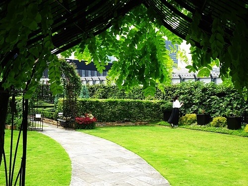 庭園に入り緑のアーチの下に行く。そこからイングリッシュガーデンの入口が見えた。