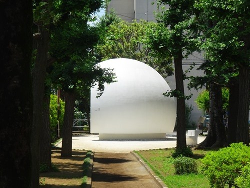 建物の裏側には大きなパネルが貼り付けてあり、暗くなると光の模様が出現するそうだ。それがなにかを問い掛けているのかもしれなかったが、私は昼間に行ったので、何も問い掛けられているようには感じなかった。