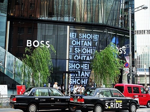 数寄屋橋の交差点にある「東急プラザ」でBOSSというメーカーが、壁一面に野球選手の大谷翔平の文字を3種類の映像で見せている。
