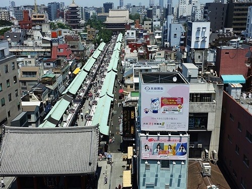 そこで先ずは雷門前の「浅草文化観光センター」の7階から、仲見世通りの様子を見た。