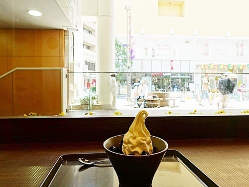 この店のゼリーは大きく、沢山入っている。上にはソフトクリームが乗っていて、値段は540円である。店の前を通ると、どうしても引き寄せられてしまうのである。