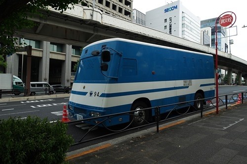 警視庁の警備車両が停車していたが、全く窓が無い。