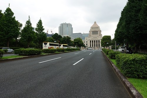 その先の交差点を右に曲がり、国会議事堂の横を歩く。