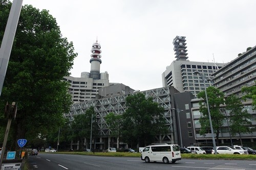 手前から衆議院議員第二宿舎、第一宿舎、その先に参議院議員第一宿舎、第二宿舎と続く。衆議院議員第一宿舎前では、デモ隊のような連中が歩道で20人ほど集まってマイクで叫んでいた。誰も立ち止まったり、見ている人がいないので、私も足早に通り過ぎる。
