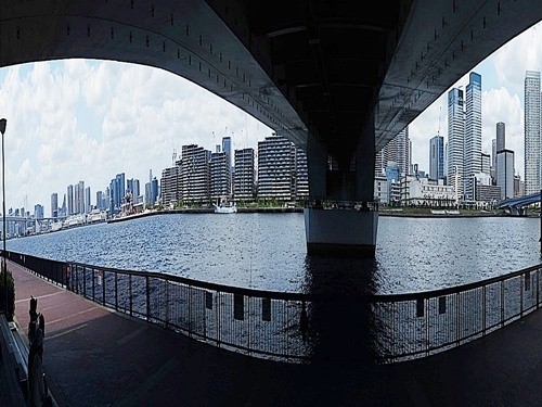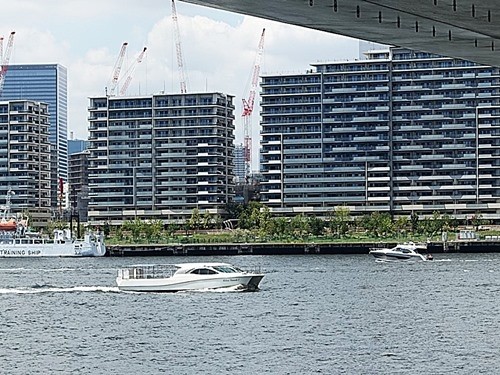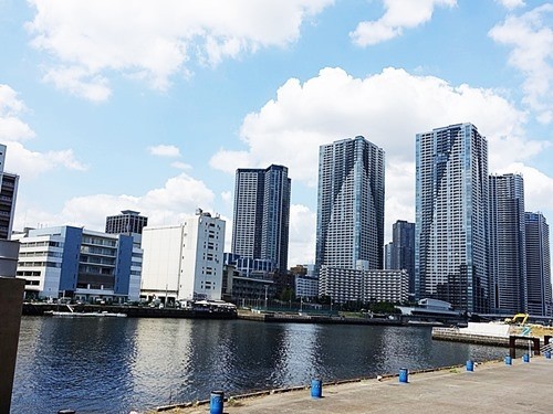 運河の向かい側には世界的なコロナ感染症のまん延で、1年延期となり2021年に開催された、東京オリンピックの時に使用された選手村が見える。