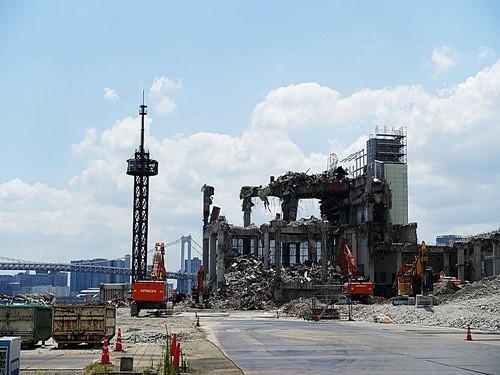 目の前が開けて、晴海客船ターミナルの解体現場が見えて来る。