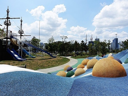 ここは新しく出来た公園で、カフェもあるし遊具もあるし、広い広場もある。