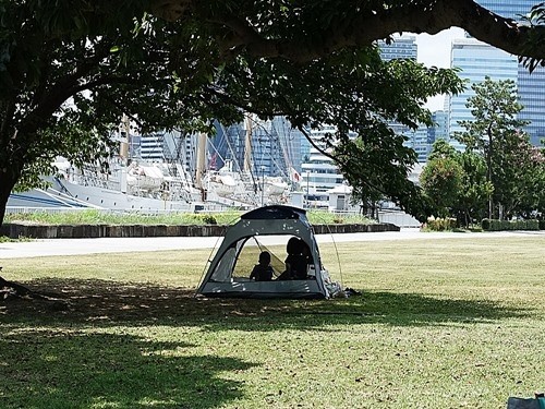 公園の中に入って行くと、3張りくらいのテントが見えた。