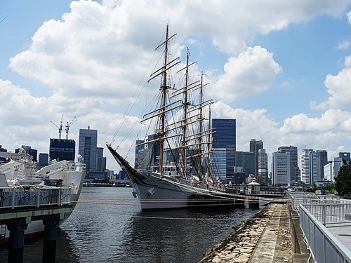 たまたまこの日は帆船「海王丸」が停泊していて、実習生たちが体操をしているのが見えた。スマホで調べたら、私の来る30分前に「海王丸」は入港したばかりだった。