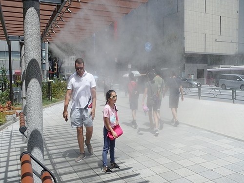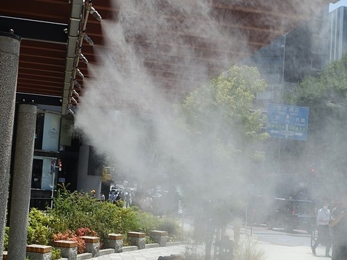 遠くから見ると、ミスト噴射は涼しそうに見える。
