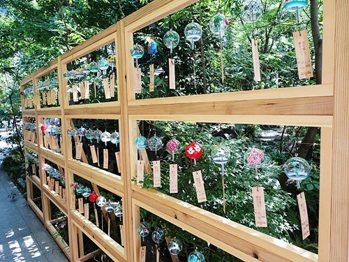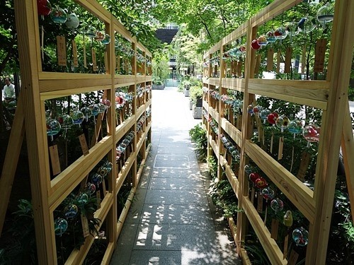 2駅で「日本橋」である。いま日本橋では「ECO EDO 日本橋 2023」というイベントを開催中で、その目玉が「江戸風鈴」である。日本橋地区の5ヶ所に風鈴を並べているようだが、私は一番規模の大きい「福徳神社」の横の「福徳の森」に行ってみた。