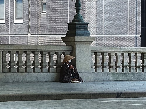 日本橋の上の修行僧はまだマスクをしている