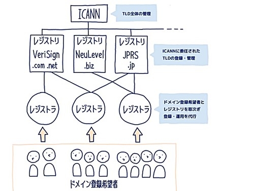 なおよく知られたドメインである「.com」と「.net」を管理しているのは、アメリカの会社「ベリサイン」である。更に驚くのは、これ等の会社のドメインを世界的に管理している組織があり、その名は「ICANN」という非営利団体である。