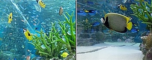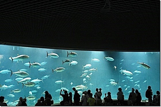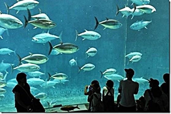 水族館に入り途中に展示してある魚たちを全てパスして、私は目当てのマグロの水槽に急ぐ。マグロのいる場所はアクアシアターと名付けられ、縦7メートル、横30メートルの大きさで、2200トンの海水が入った大きな水槽になっている。