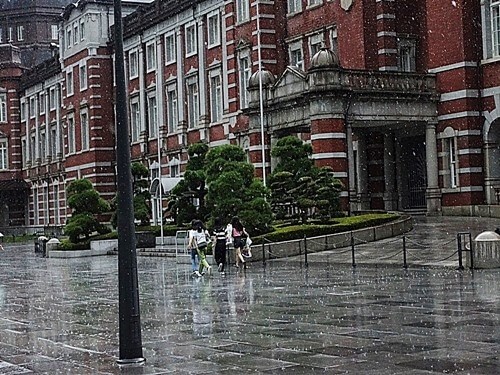 観光客が慌てて、駅の構内を目掛けて走り出した。「ゲリラ雷雨」である。
