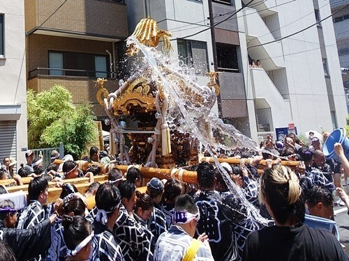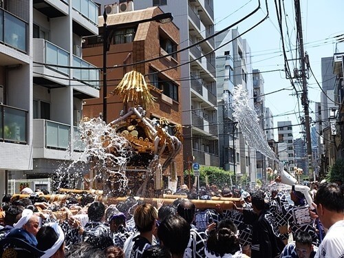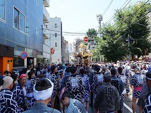 住吉神社の宮神輿は「八角神輿」と呼ばれていて、八角形の形をしている神輿である。八角形の神輿は関東では非常に珍しく、これも大阪の住吉神社の影響を受けているのだろう。この形は天皇陛下の御座を模したと言われている。資料によると「今では月島、新佃、勝どきと舞台は広がったが、基本的には江戸時代と変らず、観光客は相手にせず佃だけで完結する潔い祭りである」とあった。