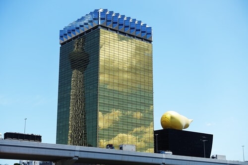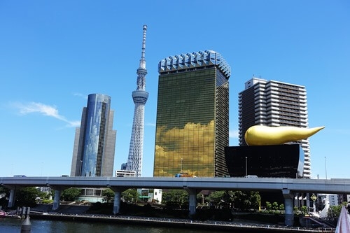 アサヒビール本社ビルに映り込む「東京スカイツリー」