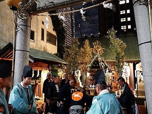 その後、宮神輿は「お旅所」に慎重に納められて、神主が「着輦祭」の儀式を行った。