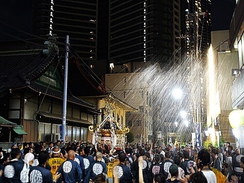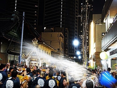 前日に町神輿がマンションにやって来た時は、住民たちの出迎えも少なく行儀も良かった。マンション族はお祭りに慣れていないし、ましてこんな派手な水掛けには怖気づいているのだ。