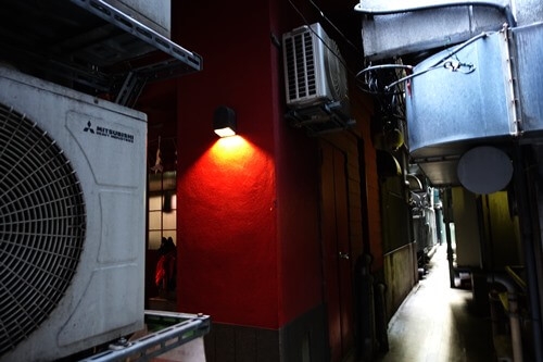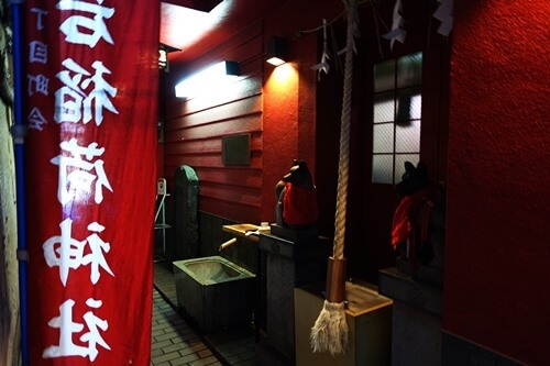 極細の路地を入り、ビルの谷間に鎮座している。しかも昼間でも暗くて良く見えない。