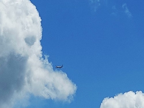 飛行機は西方向へ飛び去って行く