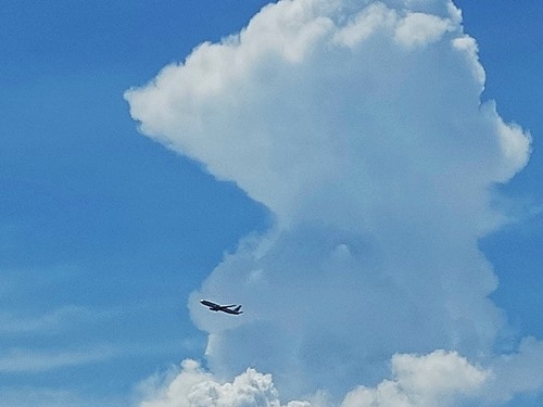 積乱雲に突っ込んで行く飛行機