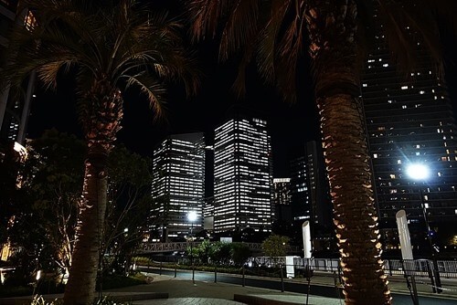 夜景を見るとヤシの木の向こうに高層ビルが見えて、まるでシンガポールみたいだ。