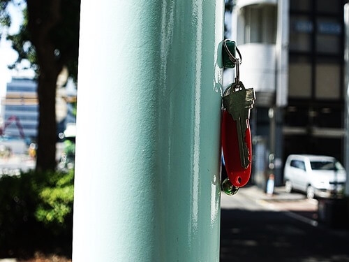 しかもその人は小さなマグネットをポールに付けて、それに鍵をぶら下げていた。